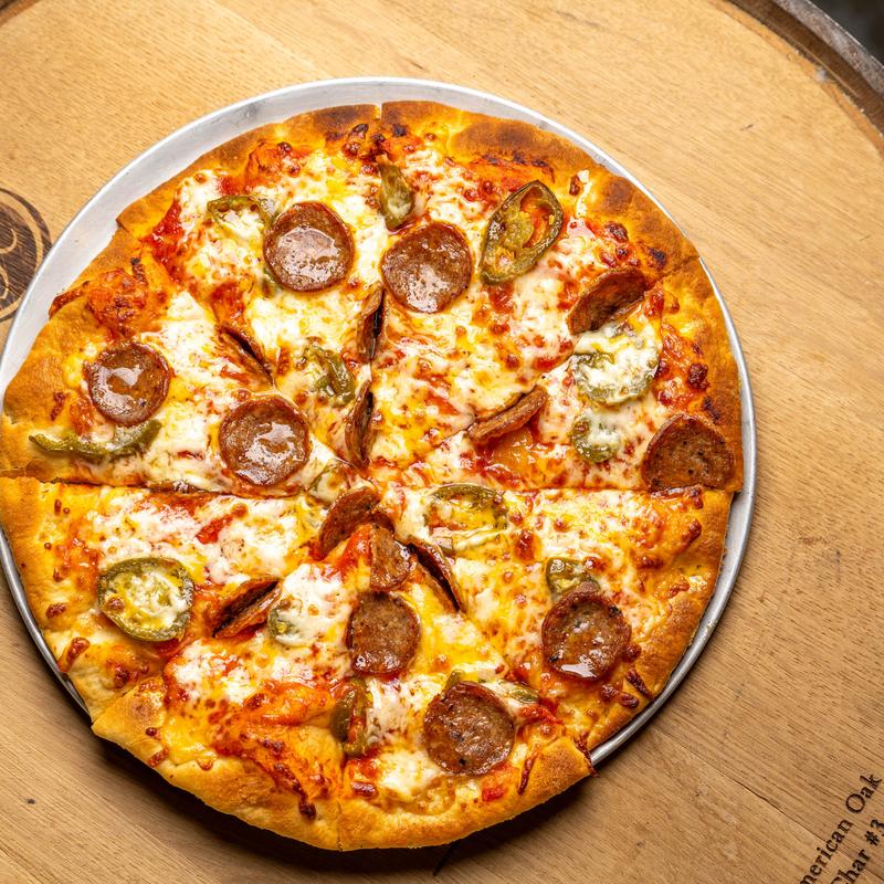 Local Pig smoked jalapeño sausage, red onion, jalapeños, black olives, and tomatoes | Red sauce